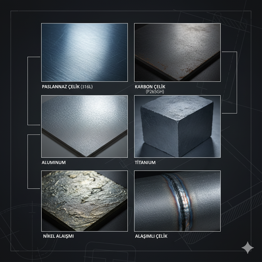 Malzeme cinsi, basınçlı kabın temel özelliklerini doğrudan belirler: