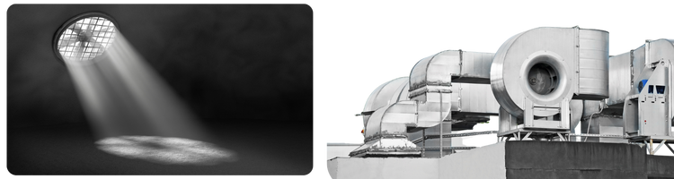 Endüstriyel Egzoz ve Duman Kontrol Sistemleri: Üretim alanlarında oluşan zararlı duman, buhar ve partikülleri etkin bir şekilde ortamdan uzaklaştıran güçlü egzoz fanları ve kanal sistemleri. (Örneğin: Kaynak dumanı, kimyasal buharlar.)